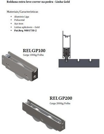 ROLDANA PARA GOLD 100/200 KG PARA TRILHO U EMBUTIDO NA PEDRA