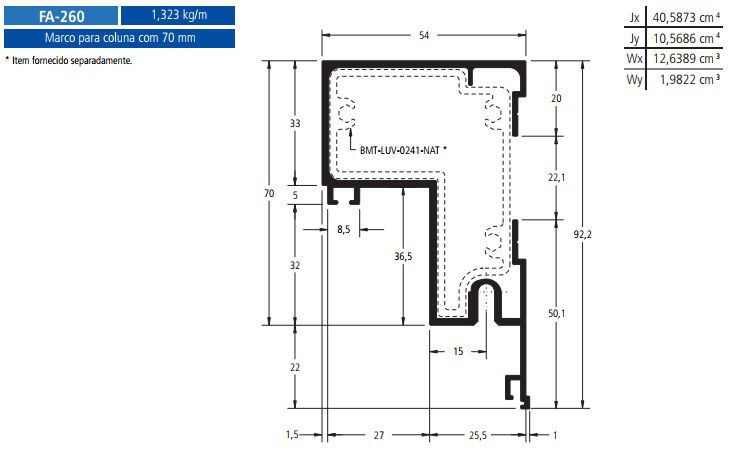 FA-260 7.93 KG POR BARRA 6,00 ML FACHADA ATLANTA ESQUADRIA DE ALUMINIO