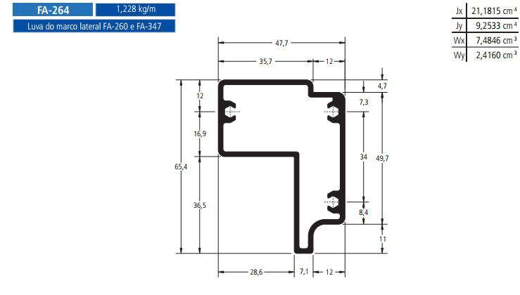 FA-264 7.36 KG POR BARRA 6,00 FACHADA ATLANTA ESQUADRIA DE ALUMINIO
