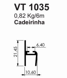 VT-1035- CADEIRINHA CENTRAL P/ 8 MM VIDRO TEMPERADO 0,820 KG BARRA 6,00 ML